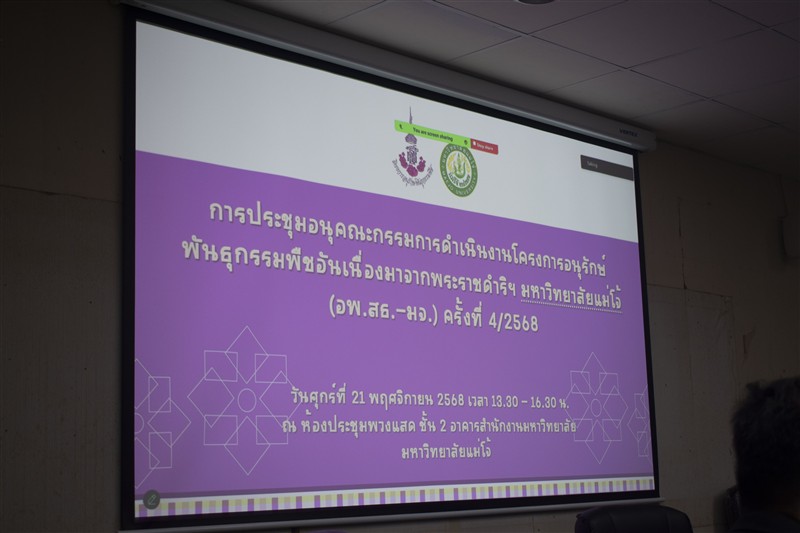 ศูนย์ประสานงาน อพ.สธ.-มหาวิทยาลัยแม่โจ้ ได้รับเชิญเข้าร่วม จัดการประชุมกลุ่มสมาชิกสวนพฤษศาสตร์โรงเรียน หลักสูตร การเตรียมความพร้อมเข้าร่วมการประชุมวิชาการและจัดนิทรรศการ วันที่ 16-17 กันยายน พ.ศ. 2568วันที่ 17 กันยายน พ.ศ. 2568 ศูนย์ประสานงาน อพ.สธ.-มหาวิทยาลัยแม่โจ้ ได้รับเชิญเข้าร่วม การประชุมกลุ่มสมาชิกสวนพฤษศาสตร์โรงเรียน หลักสูตร การเตรียมความพร้อมเข้าร่วมการประชุมวิชาการและจัดนิทรรศการ โดยได้รับเกียรติจาก ผู้ช่วยศาสตราจารย์ ดร.ชิตชล ผลารักษ์ รองผู้อำนวยการศูนย์แม่ข่ายประสานงาน อพ.สธ. มหาวิทยาลัยเชียงใหม่ เป็นประธานณ ห้องประชุมอินทนิล สำนักบริการวิชาการ มหาวิทยาลัยเชียงใหม่