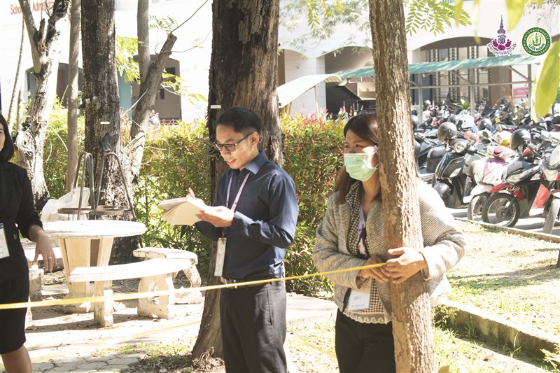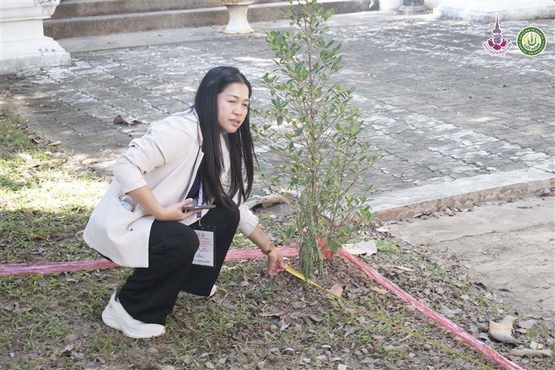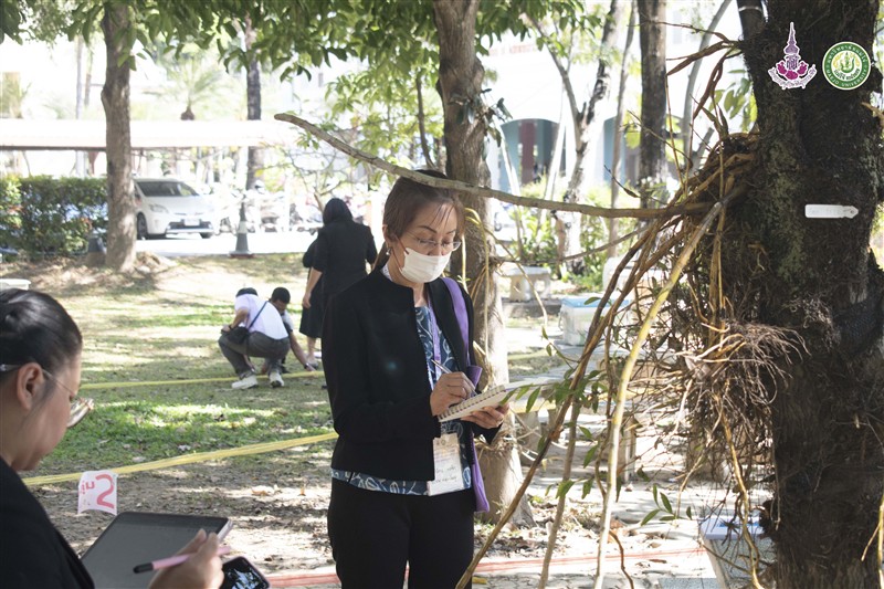 ผู้ช่วยศาสตราจารย์ ดร.ปฏิภาณ สุทธิกุลบุตร และนางสาวพีราดา แก้วทองประคำ ได้นำผู้เข้าร่วมการอบรมลงพื้นที่จำลอง เพื่อฝึกปฏิบัติการสำรวจพรรณไม้ การติดป้ายรหัสประจำต้น การกำหนดพิกัดพรรณไม้ และการจัดทำผังพรรณไม้ ทั้งนี้เพื่อเสริมสร้างความรู้ ความเข้าใจ และทักษะในกระบวนการเรียนรู้ให้แก่ผู้เข้าร่วมการอบรมอย่างเป็นระบบ