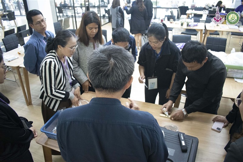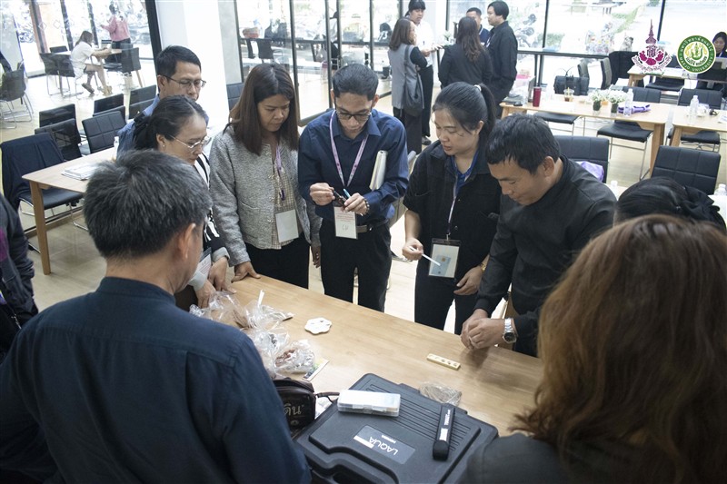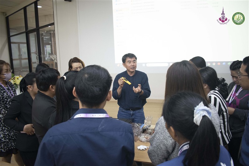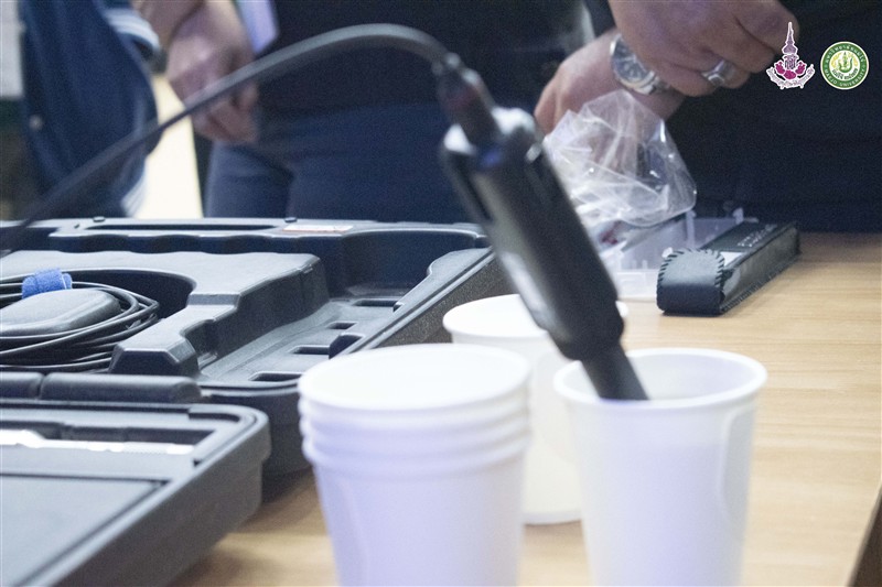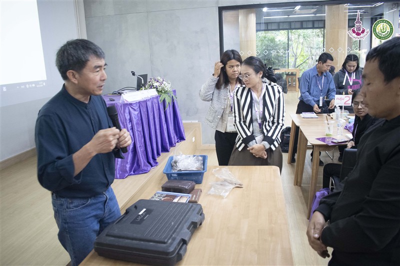 โรงเรียน สาธิตการใช้อุปกรณ์พร้อมตัวอย่างดิน แก่ผู้เข้าร่วมการอบรม เพื่อเข้าใจหลักการ และการใช้ประโยชน์ ในการสำรวจพื้นที่ศึกษาในแต่ละพื้นที่